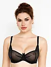 М’яка сітчаста чашка, оздоблена комбінацією чорної та тілесної сітки, створює ніжний напівпрозорий ефект. Модель на кісточках із регульованими бретелями забезпечує надійну підтримку та зручну посадку. Декоративний бантик посередині додає романтичного акценту. Ідеально поєднується з трусиками з цієї ж колекції.