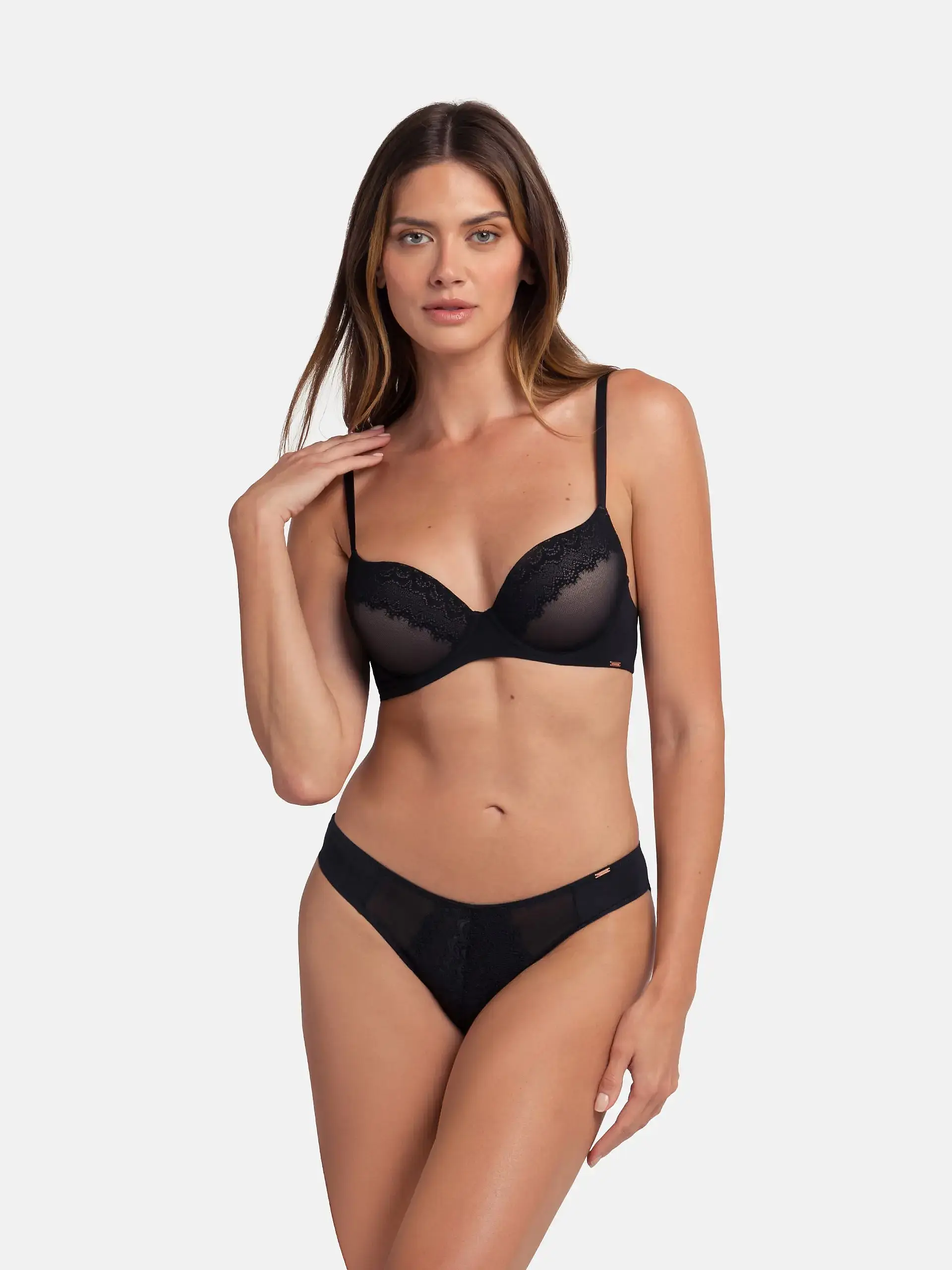 Бюстгальтер пуш-ап Brinley розроблений, щоб підкреслити та підтримати ваші форми. Виготовлений із сітки та мережива, цей фасон на кісточках має контрастну підкладку нюдового кольору – усе що треба для створення ефектності!