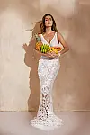 Модель виготовлена з делікатної сіточки білого кольору з витонченими смужками, а широкий еластичний пояс прикрашено розкішним золотим елементом, що надає білизні сучасного шарму. Бюстгальтер з кісточками забезпечує надійну підтримку та ідеально підходить навіть для пишних форм.