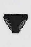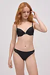 Лазерна обробка країв забезпечує гладкий силует і непомітність під одягом, а ніжне мереживо з боків і на спинці додає вишуканості. Бразильський крій підкреслює форми, забезпечуючи зручну посадку без заломів завдяки еластичній тканині.