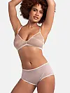 Трусики Dorina Origins у класичному міді-крої — це комфортна середня посадка та повноцінне прикриття ззаду. Модель виготовлена з мереживної сітки з делікатним блиском, що поєднує зручність із витонченим блиском для щоденного носіння.