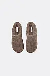 Надзвичайно м’які коричневі капці, виготовлені з пухнастої поліестерової тканини.