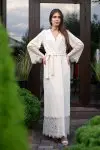 Велюровий халат класичного крою, декорований мереживомСклад 100% поліестер