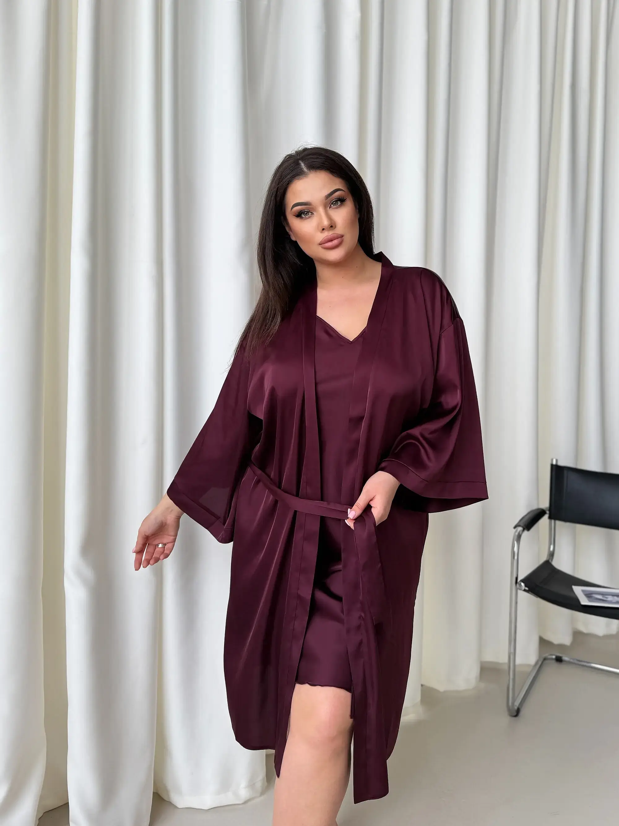 Жіночий халат від Julia, виконаний із розкішного шовк-сатину бордового кольору, створює відчуття елегантності та комфорту.