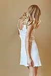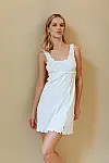 Виконана у напівприлеглому силуеті, довжина — вище коліна. Модель на широких бретелях із квадратним вирізом декольте, виріз, бретелі, лінія під грудьми та низ виробу оздоблені акуратним хвилястим швом. Тканина приємна до тіла, добре пропускає повітря та забезпечує комфорт під час сну.