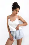 У комплект входять короткі шорти з віскози з модним смугастим малюнком. На талії є резинка і декоративна стрічка, що забезпечує ідеальну посадку і додатковий естетичний акцент. Обирайте піжаму Dorotea, щоб насолодитися стильним і комфортним сном теплими ночами.
