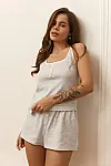 Жіночий піжамний комплект Your Touch — легка бавовняна модель сірого кольору з білими вставками на топі.