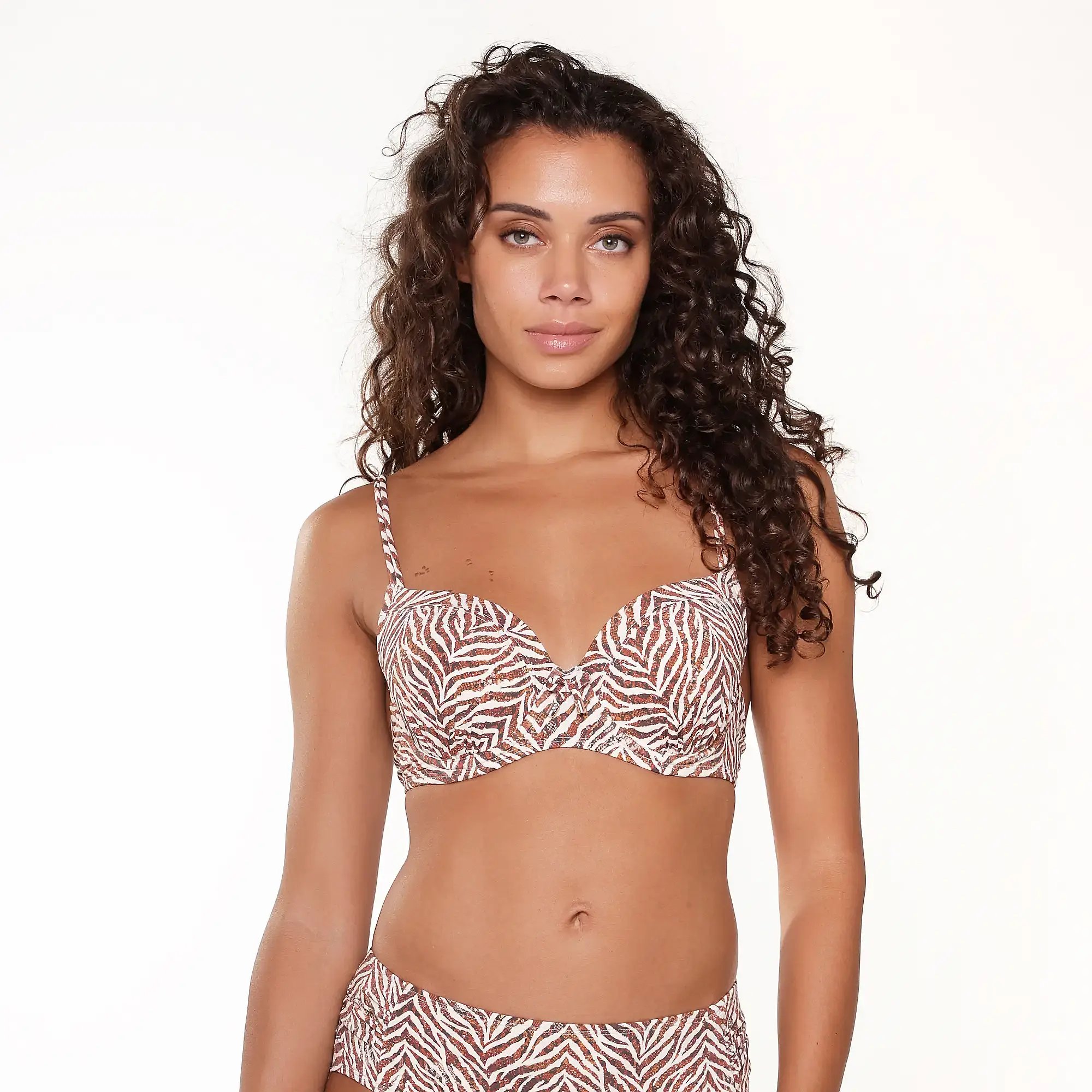 Дикий і веселий – ця модель купальника має сексуальний вигляд з унікальним принтом зебри. Бюстгалтер формована чашка має регульовані брителі та кісточки. Це робить цю форму також ідеальною для великих розмірів. Трусики регульовані по бокам зав'язками